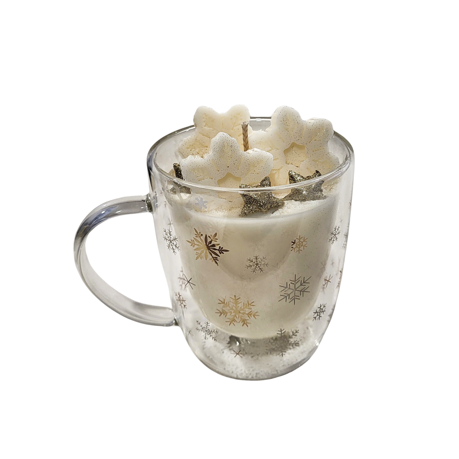 • CUP CANDLES DECO 350ml ~ GOLD SNOWFLAKES